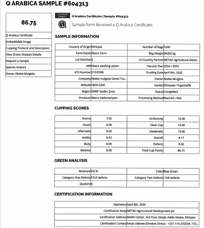 生産地 エチオピア南部諸民族州 ゲテオ県 イルガチャフェ コチャレ・ウォレダ地区
